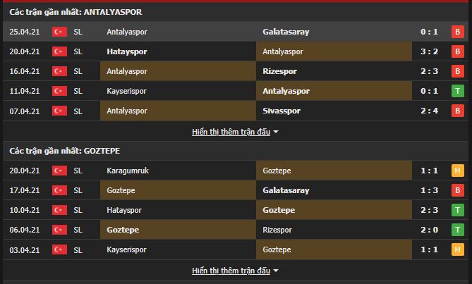 Lịch sử đối đầu trong quá khứ đang có phần nghiêng về Antalyaspor. Cụ thể, Antalyaspor bất bại cả 5 lần mới nhất chạm mặt Goztepe và thắng 3 trận. Lúc này, Antalyaspor vẫn đang có động lực trụ hạng, còn Goztepe đã hết mục tiêu phấn đâu. Do đó, nên tin tưởng đội chủ nhà sẽ có được 3 điểm trận này. Kèo châu Á, chọn chủ nhà và tài đặt kèo là hợp lý.