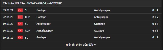 Thành tích đối đầu Antalyaspor vs Goztepe: