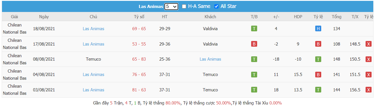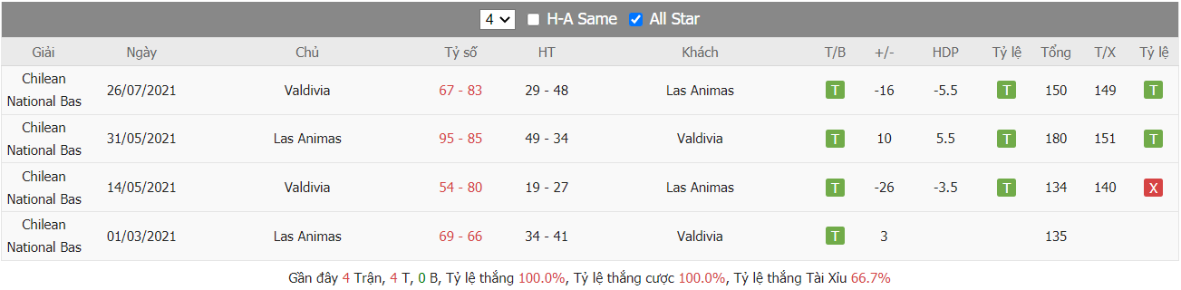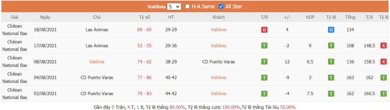 Thống kê cho thấy cả hai đội đều đang duy trì được sự hiệu quả cần thiết trên mặt trận tấn công khi mà đội chủ nhà CD Las Ánimas đã ghi được trung bình tới 81 điểm mỗi trận qua 2 trận ra sân gần nhất. Trong khi đó Deportivo Valdivia cũng không quá kém cạnh khi cũng đã bỏ được vào rổ các đối thủ trung bình lên tới 85 điểm mỗi trận và để mất trung bình lên tới 76 điểm trong 5 trận ra sân gần nhất. Từ đó cho thấy khả năng bùng nổ tỷ số ở trận đấu tới càng được đánh giá cao hơn.