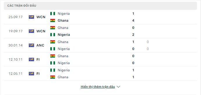 Thống kê phong độ gần đây Ghana vs Nigeria