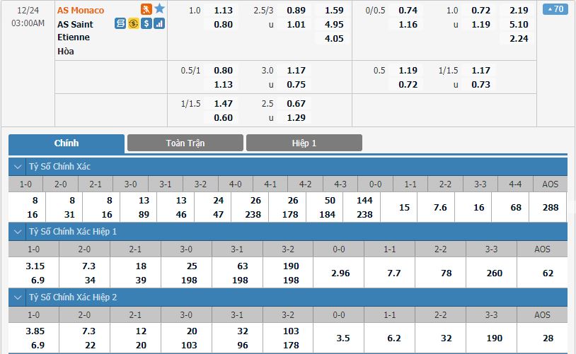 - Tỷ lệ kèo bóng đá Monaco vs Saint Etienne