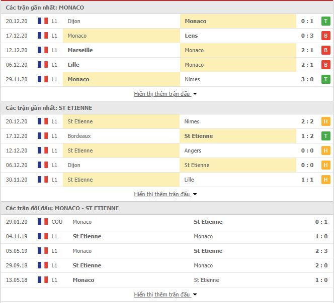 Thống kê phong độ & Lịch sử đối đầu Monaco vs Saint Etienne