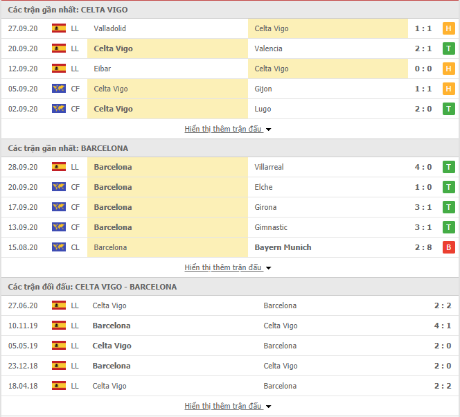 Thống kê phong độ & Lịch sử đối đầu Celta Vigo vs Barcelona