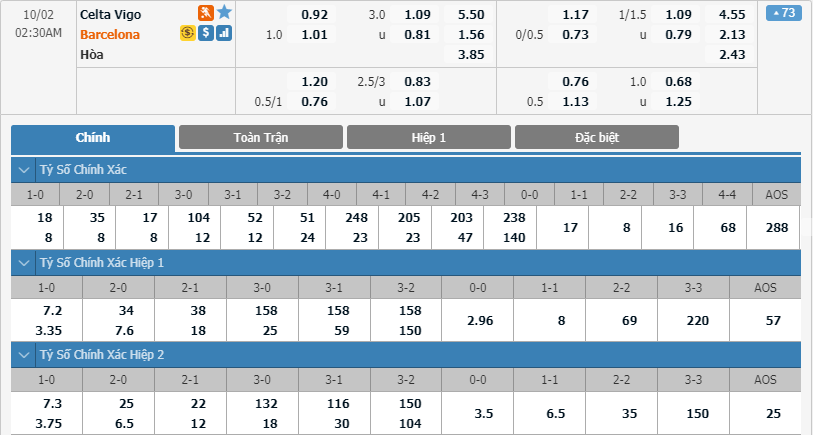 - Tỷ lệ kèo bóng đá Celta Vigo vs Barcelona
