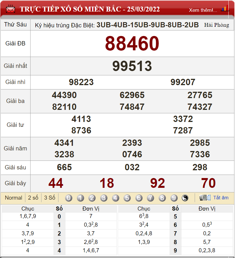 Kết quả cầu lô theo xổ số miền Bắc ngày 25/3/2022