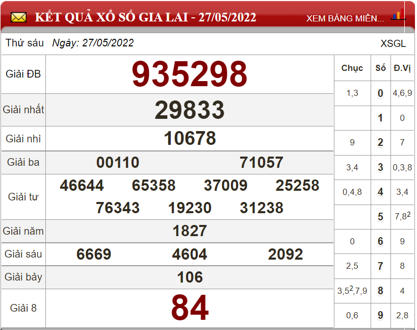 Kết quả lô đề theo xổ số Gia Lai ngày 27/5/2022