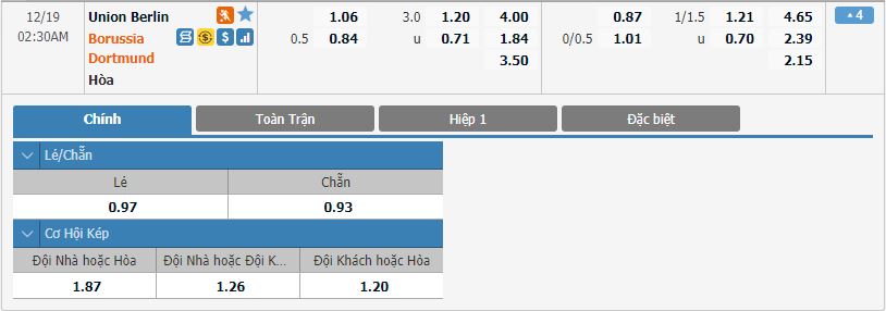 - Tỷ lệ kèo bóng đá Union Berlin vs Borussia Dortmund